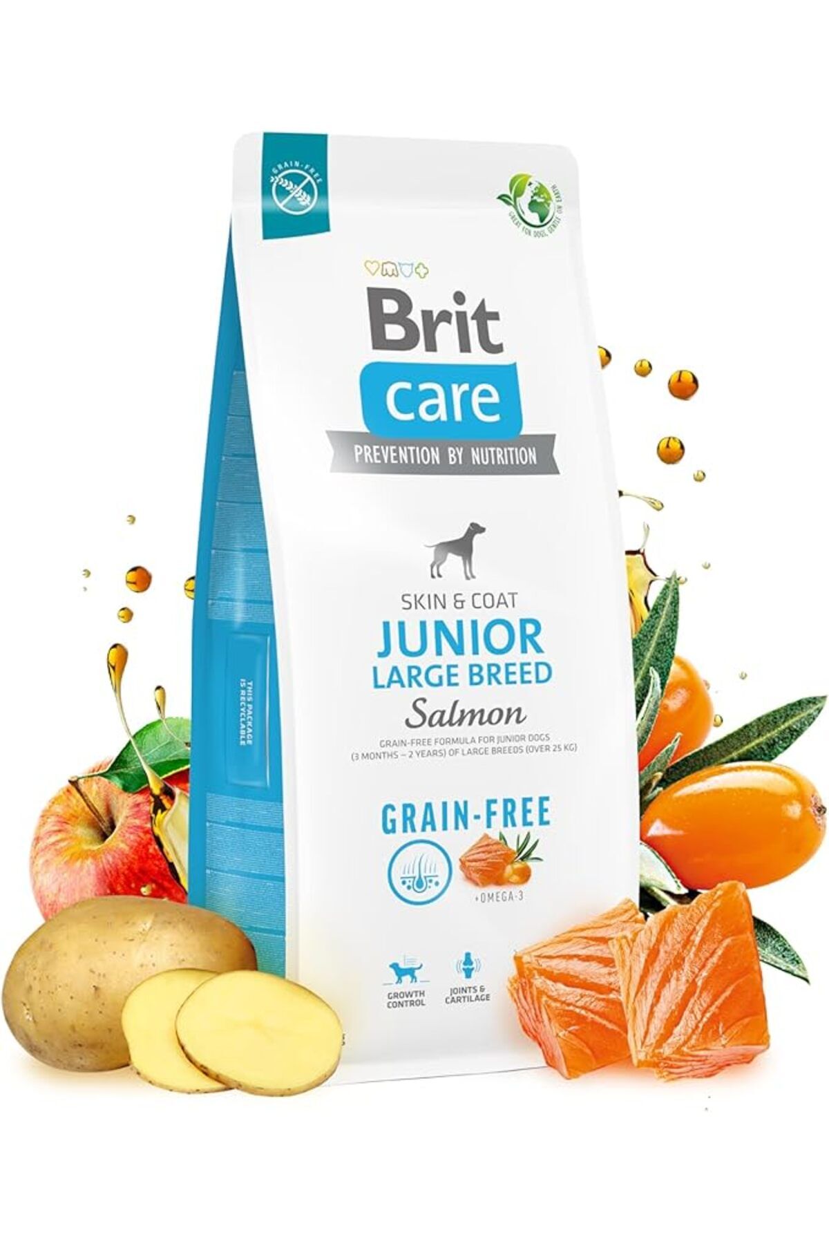 Brit Care Junior Large Breed, Deri Ve Tüy Hassasiyeti Olan Büyük Irk - Genç Köpekler İçin, Tahılsız, Somon Balıklı Kuru Mama, 12 kg