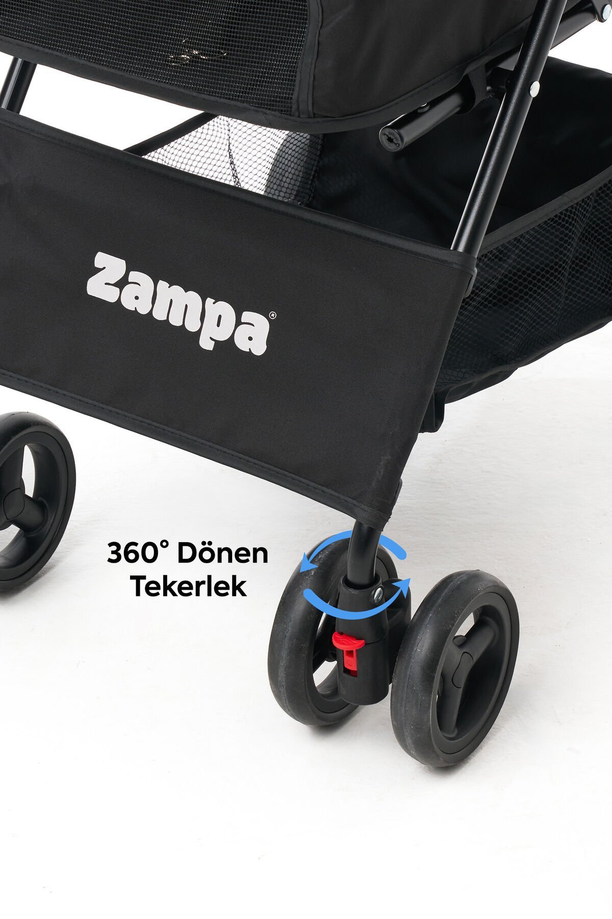 - 360° dönebilen, şok emici tekerlekler ile akıcı sürüş