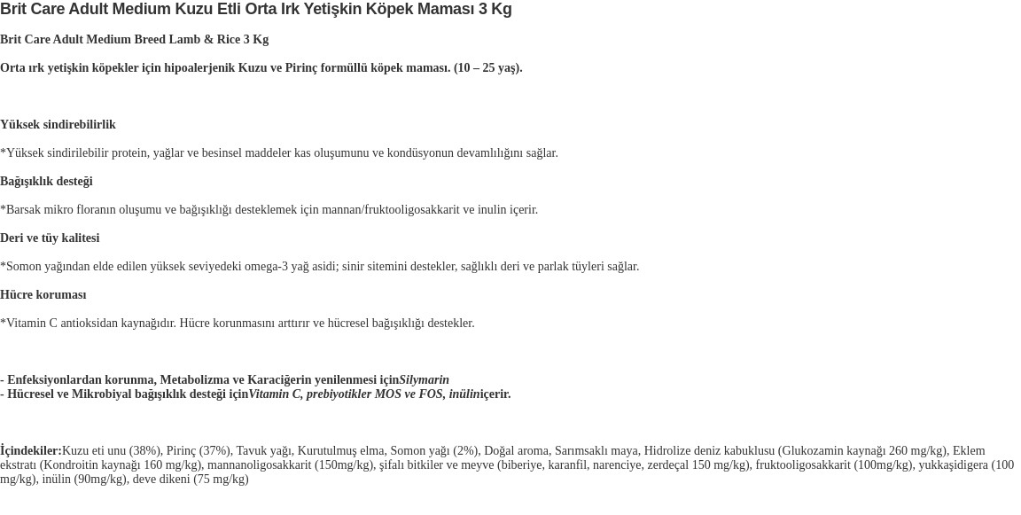 Hypoallergenic Adult Medium Breed Kuzulu Orta Irk Yetişkin Köpek Maması 3 Kg