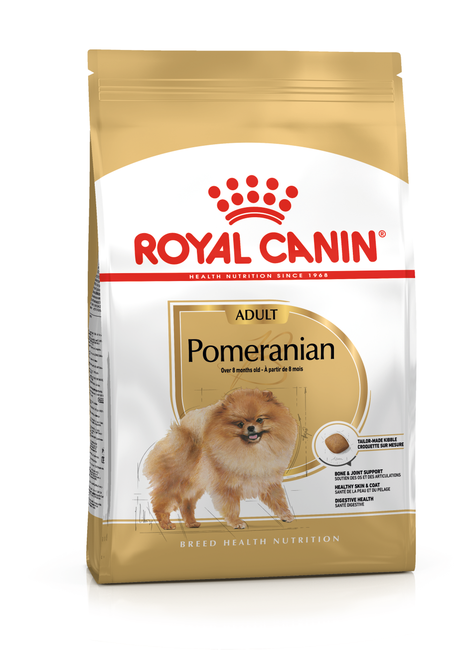 10 aylıktan büyük safkan Pomeranian ırkı köpeklerin özel ihtiyaçlarını karşılamak üzere geliştirilen Royal Canin Pomeranian Adult, bu eşsiz ırkın çene yapısı, sindirim sistemi, deri-tüy yapısı ve genel sağlığına uygun besinlerle formüle edilmiştir. Küçük boyutlu ama enerjik yapıya sahip Pomeranian’ların sağlıklı ve mutlu kalmaları için özel besin öğeleriyle desteklenir.
