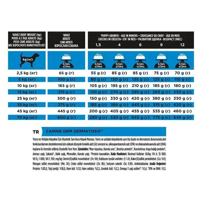 Dermatoz ve aşırı tüy dökülmesi durumlarında cilt işlevini desteklemek için bilimsel olarak formüle edilmiş, her yaştan köpekler için tam kuru mama. Diyet, sağlıklı deri ve kürkü teşvik eden, yara iyileşmesini destekleyen ve bağışıklık fonksiyonunu desteklemeye yardımcı olan besinler içerir. Enflamatuar veya alerjik dermatoz ve yiyeceğe ters reaksiyon gösteren köpekler için uygundur. Bu oldukça lezzetli veteriner diyeti, her yaştaki köpeklerde deri hastalıklarını besleyici bir şekilde yönetmeye yardımcı olmak için formüle edilmiştir. Gıda reaksiyonlarından kaynaklanan olası rahatsızlıkları en aza indirmeye yardımcı olmak için genellikle köpek mamasında bulunmayan sınırlı sayıda protein kaynağı içerir.
