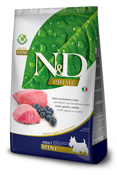 ND Prime Tahılsız Kuzu Etli ve Yaban Mersinli Küçük Irk Yetişkin Köpek Maması 2,5kg