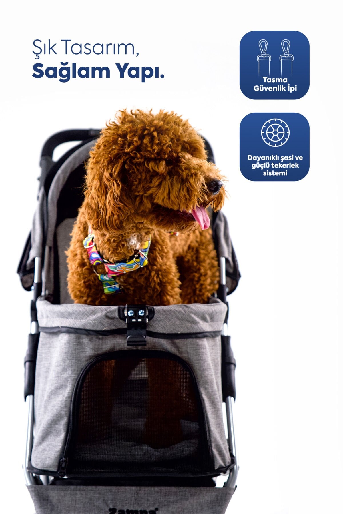 Zampa TriBoro Kedi & Köpek Arabası Gri, 45x80x90cm