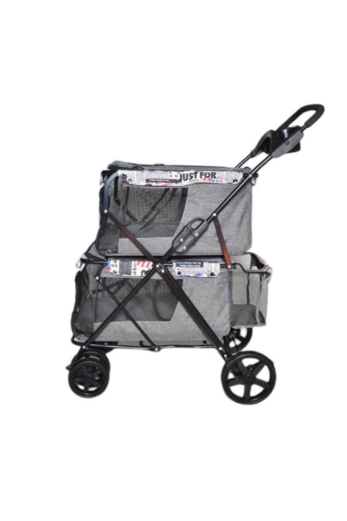 Zampa Twins Kedi ve Köpek Arabası Gri 51x85x100 Cm